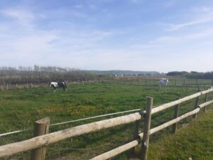 This was my first year at the Beach Drive and I can not wait till the next one! We blew into a great camp site with paddocks for our ponies and a lush green grass campsite for ourselves, Emma and I positioned the trailer and van along with Carol and Eddy’s Lorry as wind breaks after unloading and settling Turbo Tink. Up went the gazebo with the four of us holding on as tight as we could to our designated corners, after us all nearly being lifted in to the air,our anchor man Eddy managed to tie the frame to Emma’s van wheels and trailer hitch with cord and baler twine. He then magically produced a large metal tether pin which firmly kept the gazebo in place. The kettle went on, bags unpacked, beds made, taxi ordered. Off Eddy and I went in search of the fish and chip shop, The Surrey, all was cooked fresh in front of us. Emma and Carol retreated to the barn setting up our dining area amongst our guests for the evening, the farm chickens and the cat. We sat eating the most amazing fish and chip supper watching the rain and wind and planning our next days drive. After a walk with Judy the dog along the beach to suss out the sand dune, Emma and I had a hot chocolate and tea with Carol and Eddy then we all called it a night.